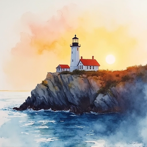 Watercolor1024x1024a lighthouse on a rocky cliff at golden hour