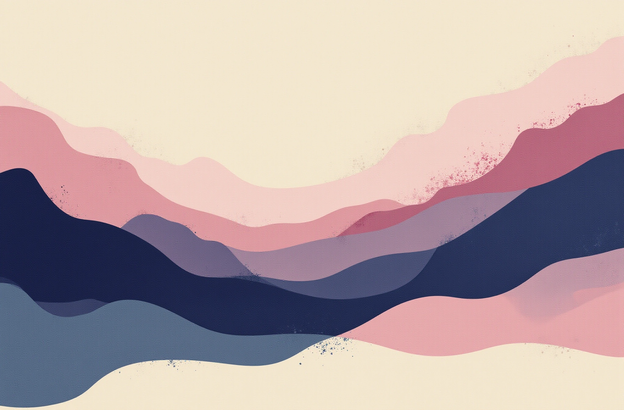 Modern Illustration1344x768Modern illustration of layered mountain landscape, geometric shapes, muted earth palette