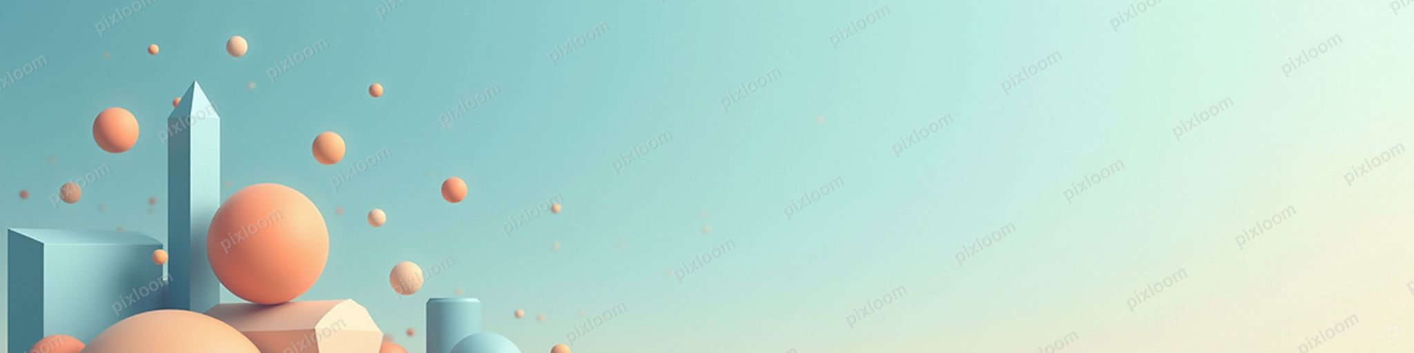 Modern Illustration2048x512abstract geometric shapes floating on a cool blue gradient, soft light, elegant and minimal