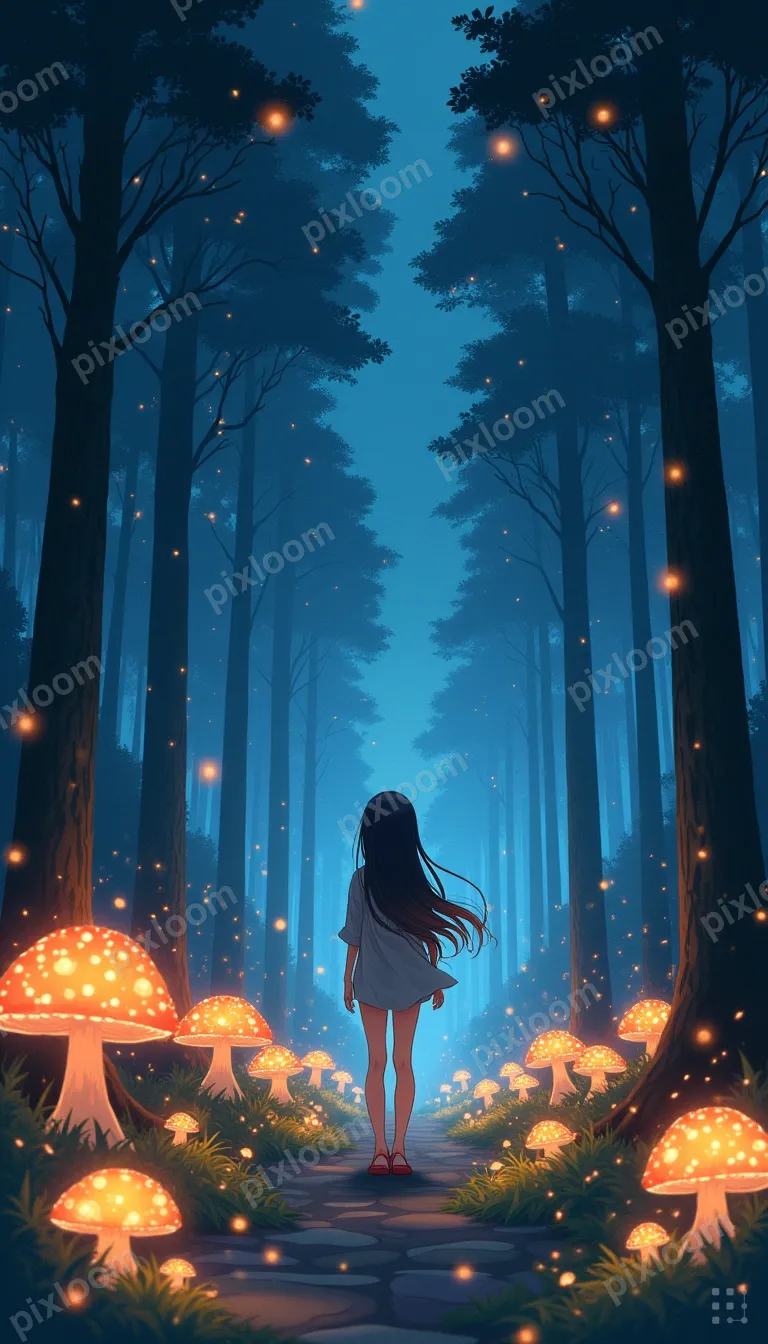 Anime768x1344Anime-style magical forest with glowing mushrooms, fireflies, moonlit path, ethereal atmosphere
