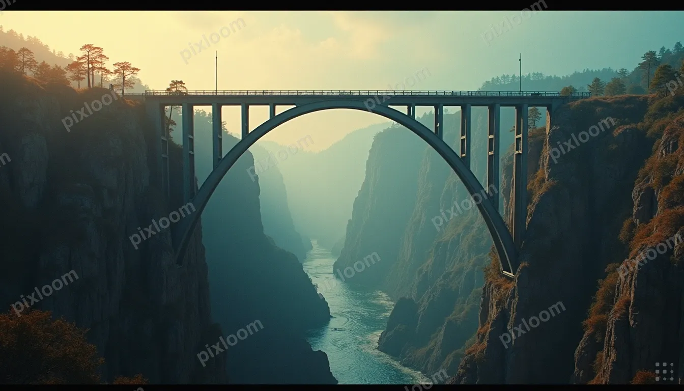 Cinematic1344x768Bridge connecting two separate cliff faces, dramatic gorge below, connection and spanning gaps