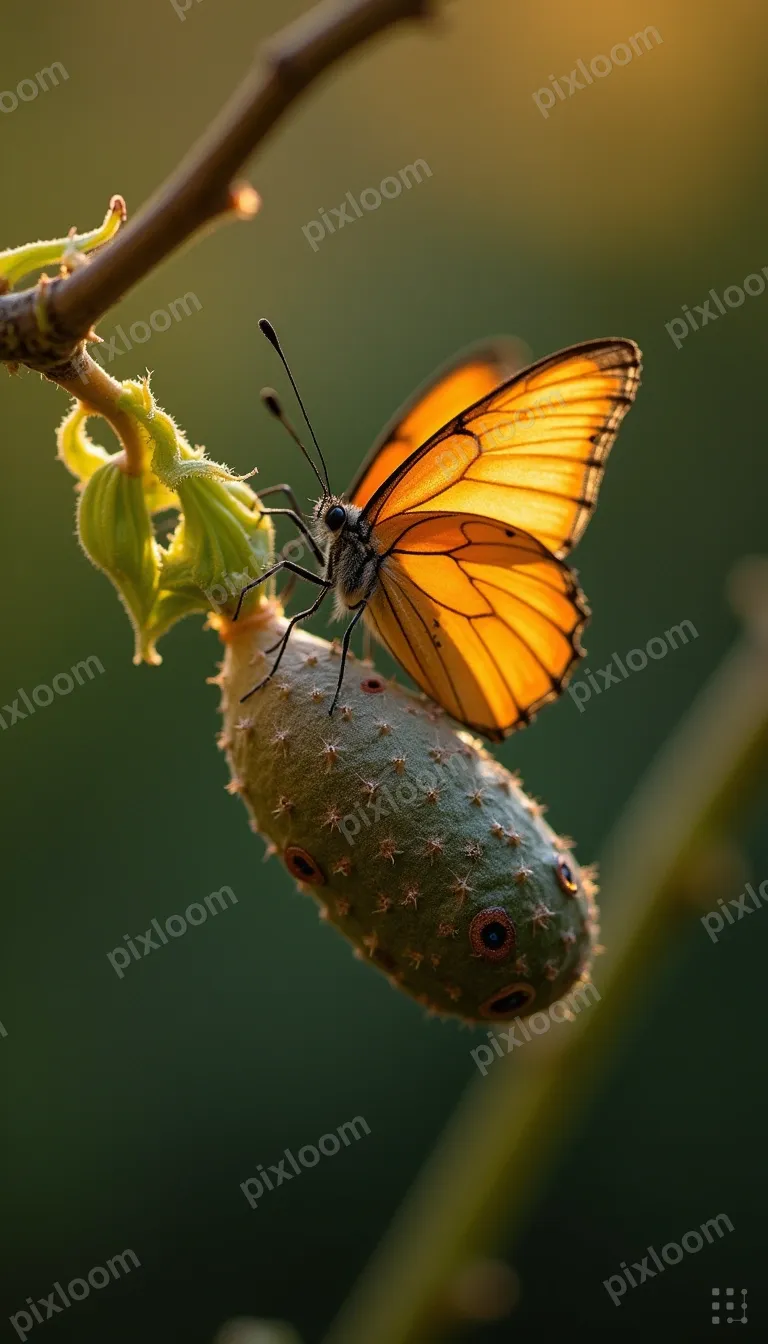 Photorealistic768x1344Butterfly emerging from chrysalis, wings still unfurling, transformation in progress, macro detail