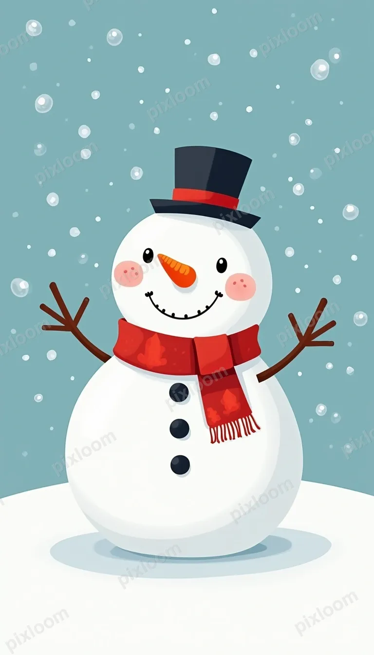 Cartoon768x1344Cartoon snowman in a winter wonderland, scarf, top hat, carrot nose, children's book style
