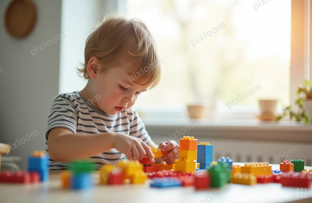 Bright & Airykids1280x832Child building with LEGO bricks on a table, colorful creation taking shape, imagination at work