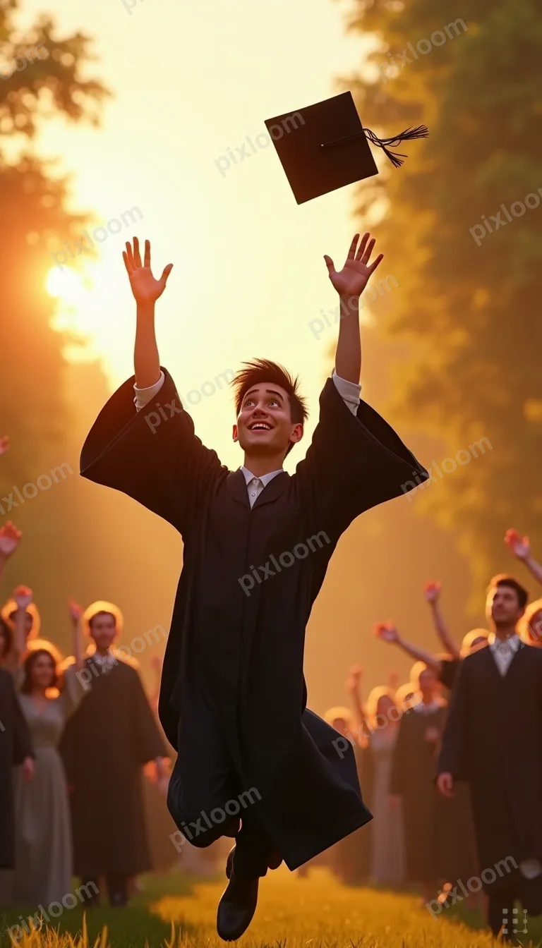 Photorealisticbigkids768x1344Graduation ceremony, graduate throwing cap in air, family cheering in background, proud moment