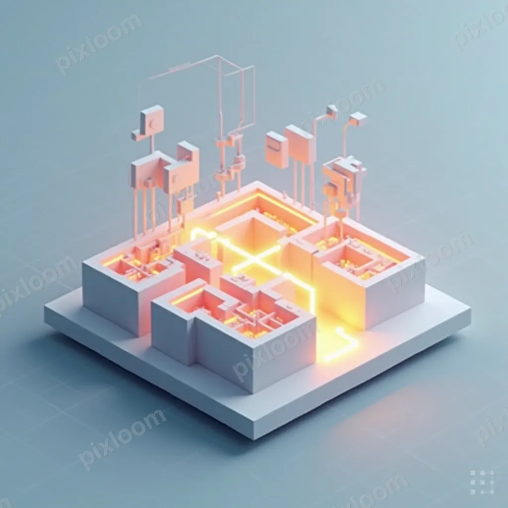 Isometric1024x1024Isometric maze with a clear glowing path from start to finish, problem-solving visualization