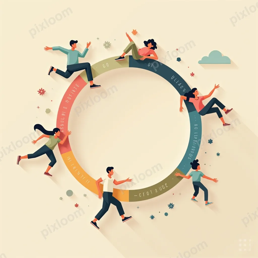 Modern Illustration1024x1024Modern illustration of a daily routine circle — wake up, exercise, work, relax, sleep — pastel icons