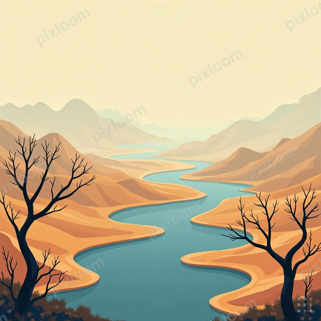 Modern Illustration1344x768Modern illustration of layered mountain landscape, geometric shapes, muted earth palette