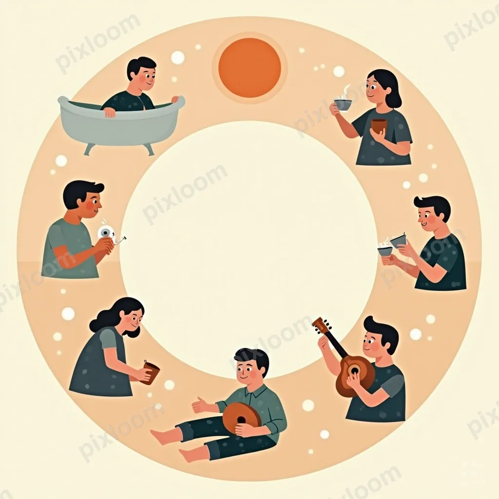 Modern Illustrationadults1024x1024Modern illustration of self-care activities in a circle — bath, reading, tea, walk, sleep, music