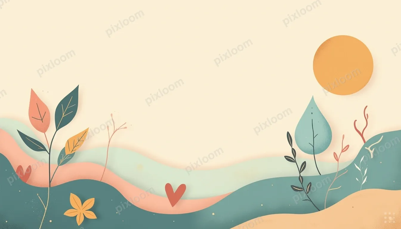 Modern Illustration1344x768Modern illustration of wellness icons — leaf, heart, sun, water drop — in soothing pastel colors