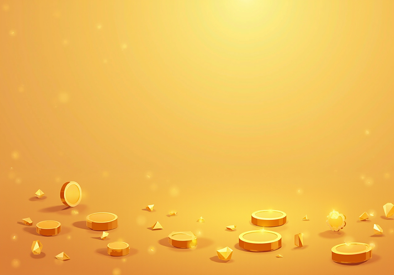 Modern Illustration1280x896scattered gold coins and gemstones on a warm amber gradient, soft glow, elegant and minimal