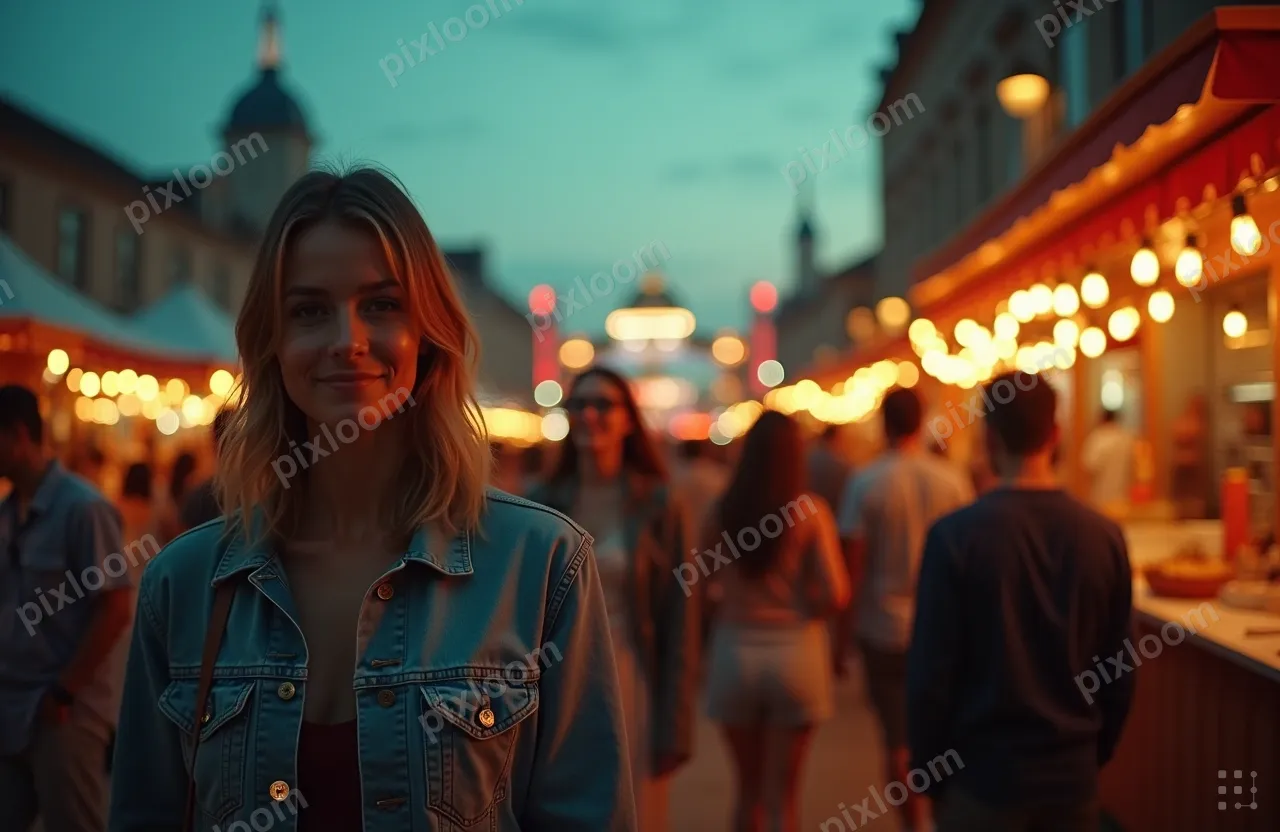 Cinematicadults1280x832Street festival with food stalls, live music stage, diverse crowd, colored lights, evening energy