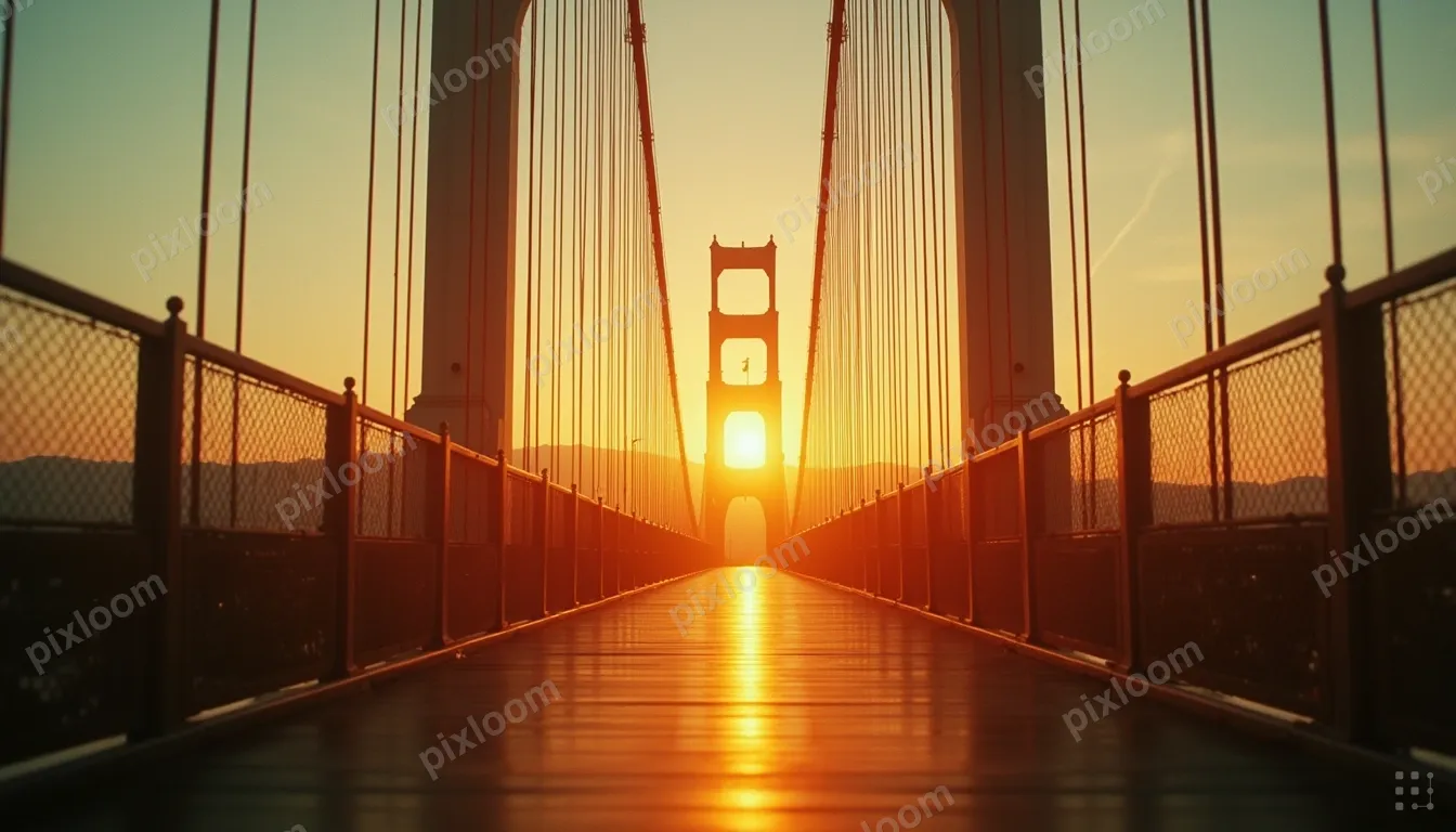 Cinematic1344x768Suspension bridge at golden hour, dramatic cables and towers, sun directly behind, silhouette