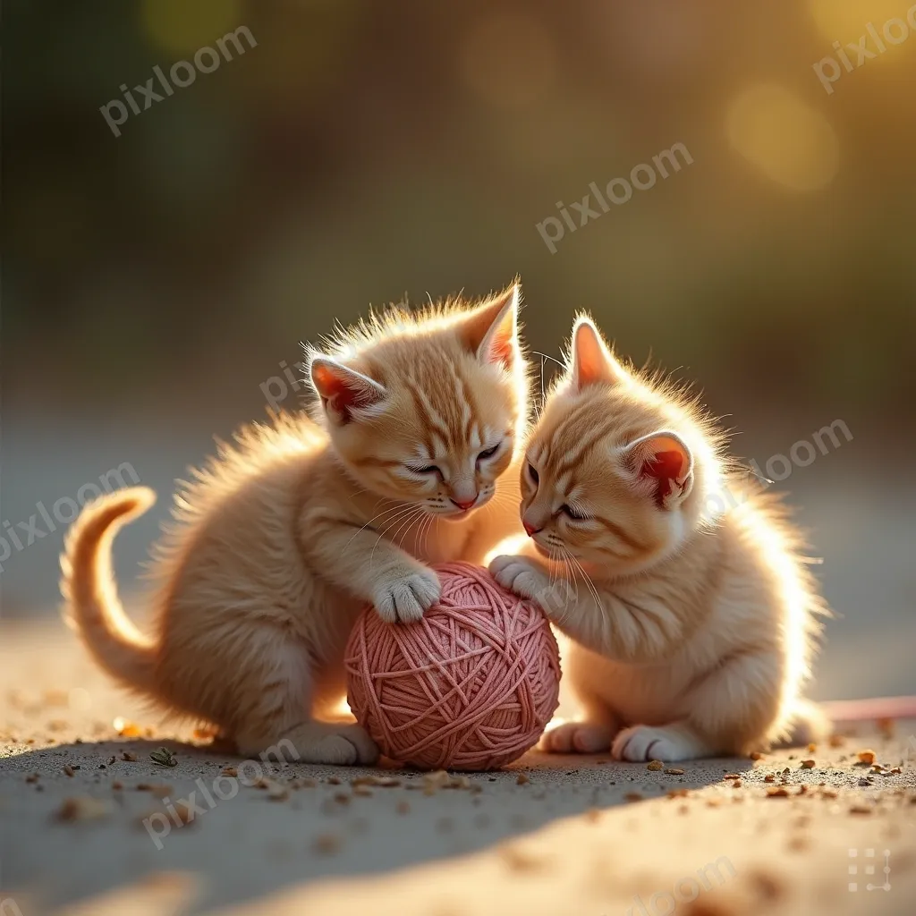 Photorealistic1024x1024Three kittens playing with a ball of yarn, different colors, tumbling over each other, adorable
